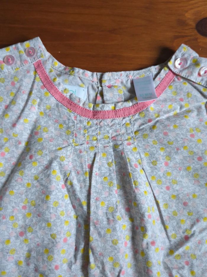 Tunique manches longues Liberty blanc gris rose jaune 23 24 mois obaibi - photo numéro 4