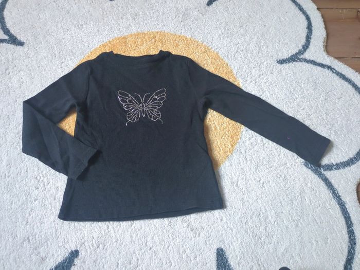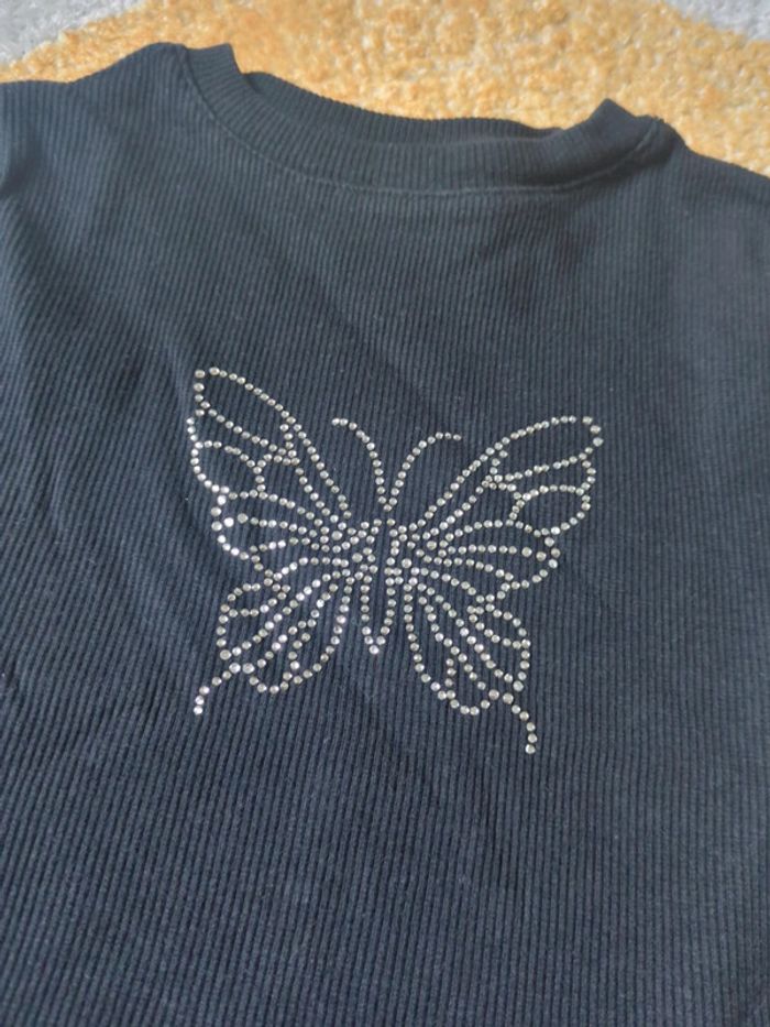 T-shirt noir manches longues Zara papillon strass neuf - photo numéro 1