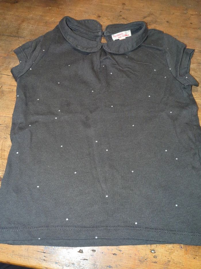 T-shirt gris pois argent dpam 5 ans col claudine neuf - photo numéro 2