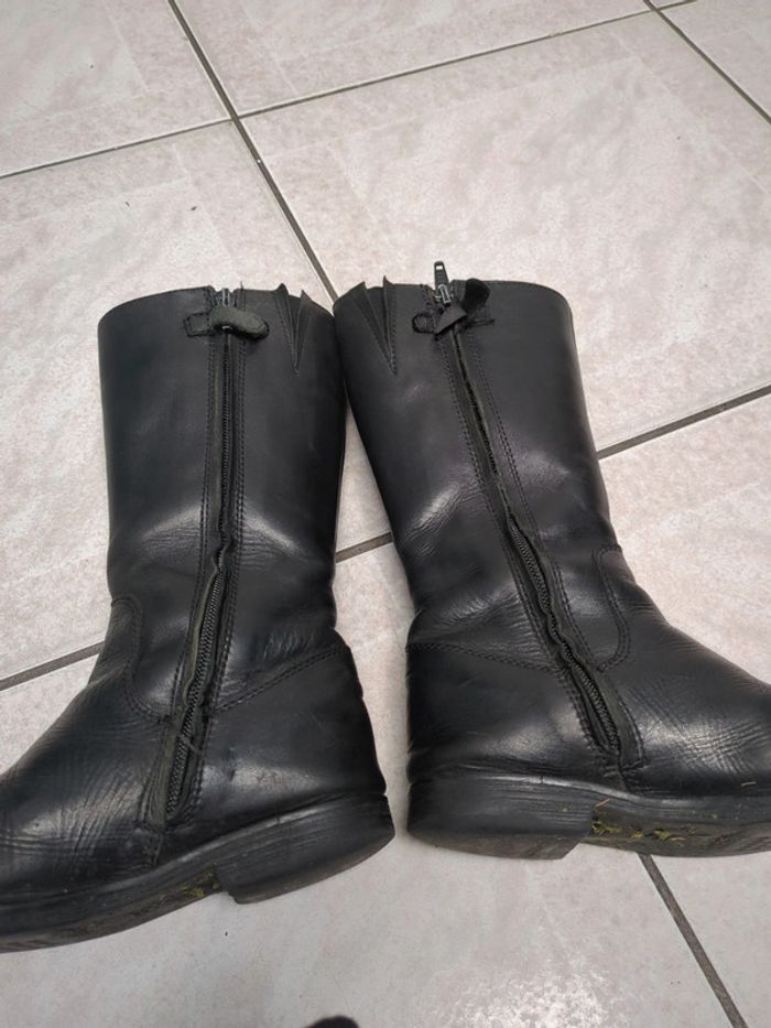 Très jolies bottes en 32 Elles sont en tbe, juste le petit scratch en haut de la fermeture qui ne tient plus bien La fermeture fonctionne très bien. Elles sont très faciles à enfiler et assez larges (pour les mollets plus costauds)