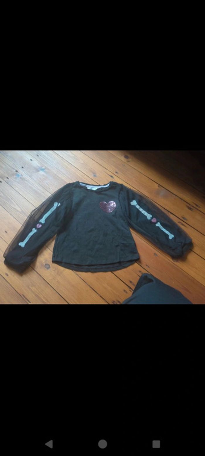 Déguisement t-shirt tshirt fille halloween squelette coeur sequins 4 - 6 ans h&m - photo numéro 3