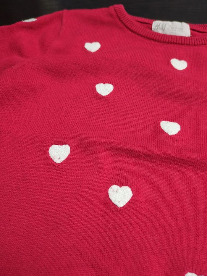 Pull rouge coeur blanc h&M 4-6 ans - photo numéro 3