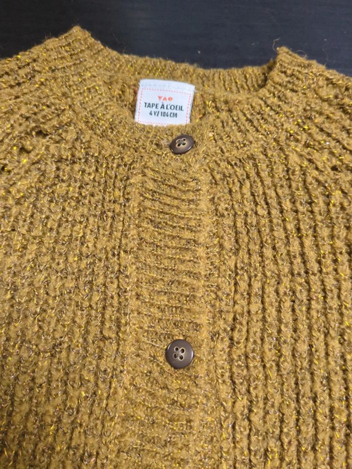 Gilet TAO 4 ans ocre moutarde paillettes or grosse maille chaud - photo numéro 1