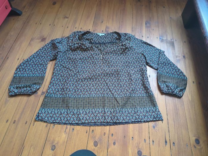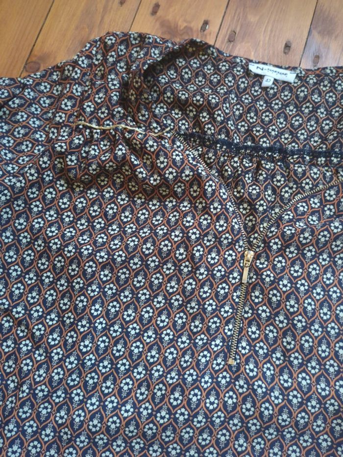 Blouse naf naf motif vintage oriental doré marron kaki fermeture éclair 42 - photo numéro 1