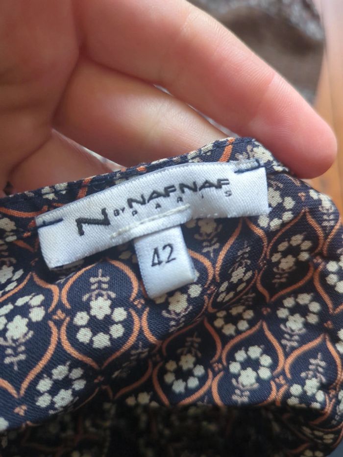 Blouse naf naf motif vintage oriental doré marron kaki fermeture éclair 42 - photo numéro 7