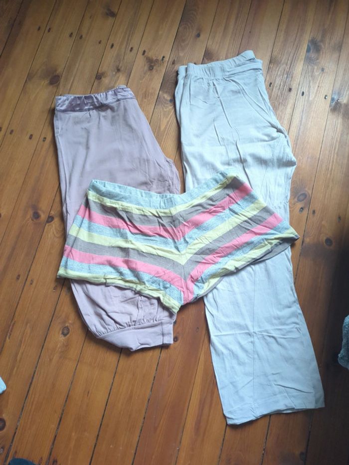 Vends lot de bas de pyjamas. Tous en 44 ou XL Portés, mais en bon état, pas de trous, juste quelques petites bouloches a lentrejambe, prêts pour une seconde vie
