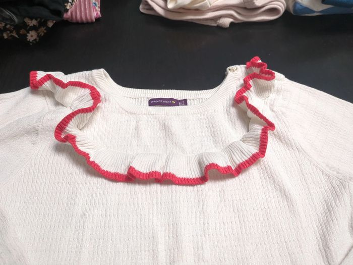T-shirt pull fin grand col blanc cassé rouge sergent major 8 ans - photo numéro 3