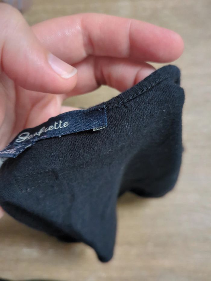 En bon état, ma fille a dû le mettre une fois... 5 ans Noir Micro trou au niveau de l'étiquette, a cause de l'antivol au magasin, voir dernière photo