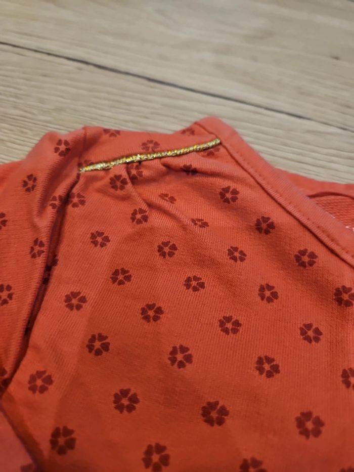 Gilet corail avec des petites fleurs taille 18 mois. Marque TQF. Petit détail doré aux épaules. #jessd2109_18_mois
