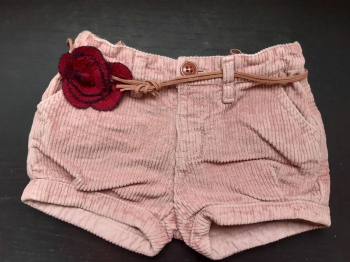 Short velours vieux rose fleurs Zara 18 24 mois - photo numéro 1