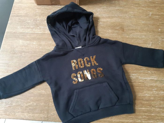 Sweat capuche noir doré sequin brillant rock songs TAo 2 ans comme neuf