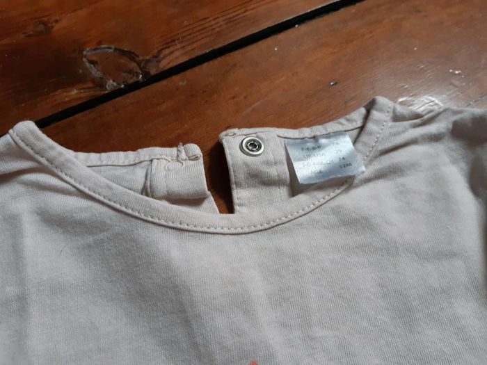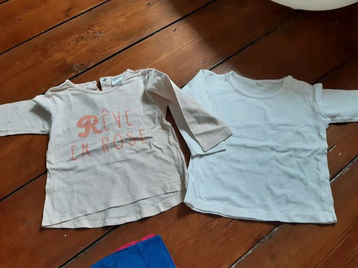 Lot 2 tshirts bébé fille 12 mois manches longues blanc.broderie fleurs rêve en rose texte - photo numéro 3