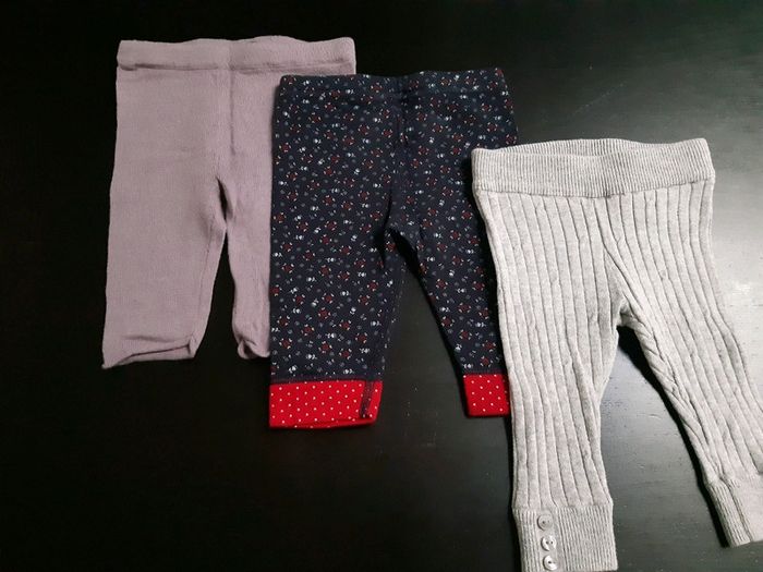 Lot 3 legging bébé fille 3 mois petit bateau vertbaudet obaibi liberty violet gris