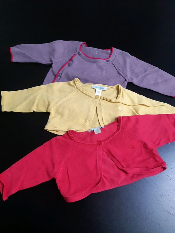 Lot 3 gilet boléro bébé fille 3 mois obaibi vertbaudet violet rose jaune Peps été - photo numéro 1