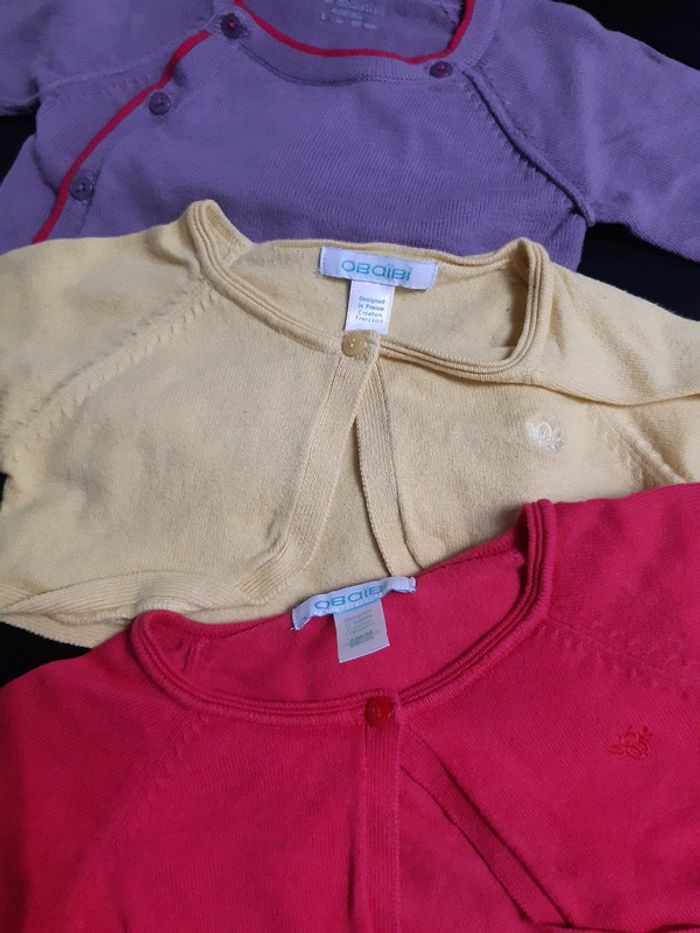 Lot 3 gilet boléro bébé fille 3 mois obaibi vertbaudet violet rose jaune Peps été - photo numéro 2