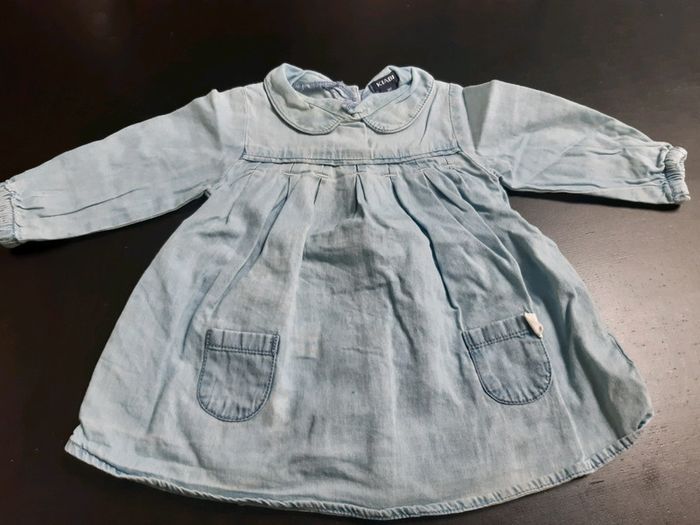 Robe jean col claudine 3 mois bébé fille manches - photo numéro 1