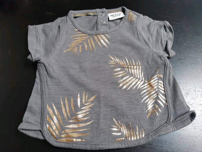 Tshirt été bebe filme 3 mois TAO gris doré feuille vegetal palmier neuf