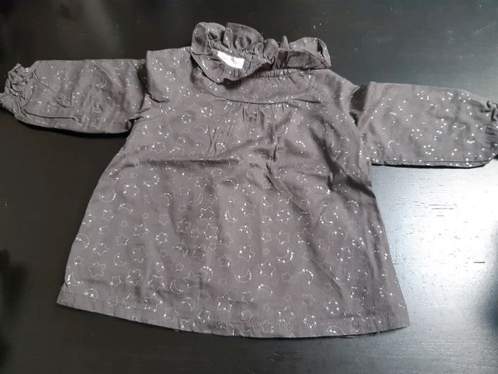 Blouse tunique bébé fille 3 mois obaibi col collerette gris argent etoiles lunes strass neuf