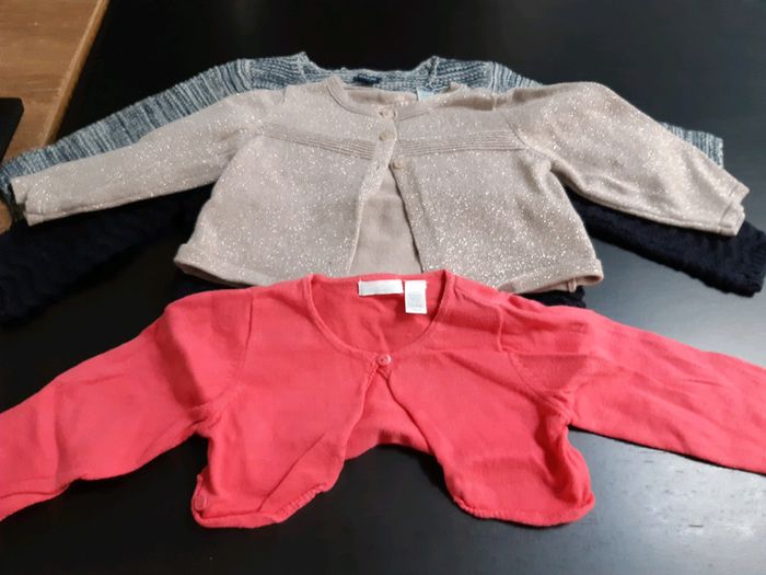 Lot 6 gilets ou boleros bébé fille 12 mois paillette argent or rose bleu gris - photo numéro 2