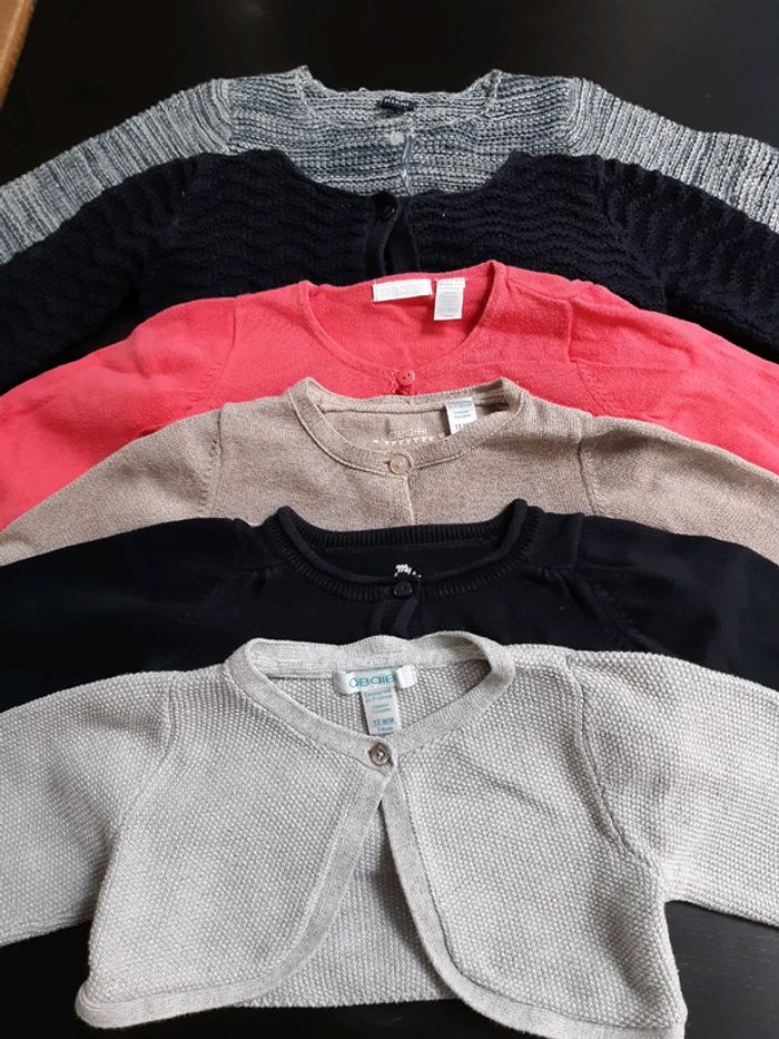 Lot 6 gilets ou boleros bébé fille 12 mois paillette argent or rose bleu gris - photo numéro 1