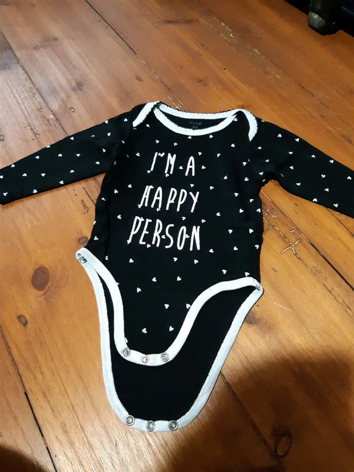 Body bébé fille noir blanc rare happy Kiabi 9 mois