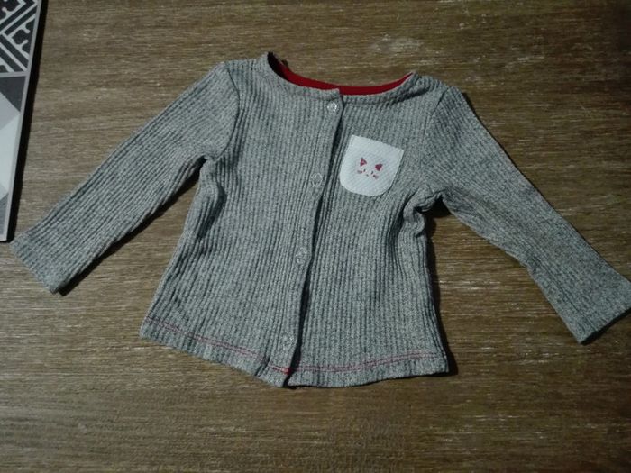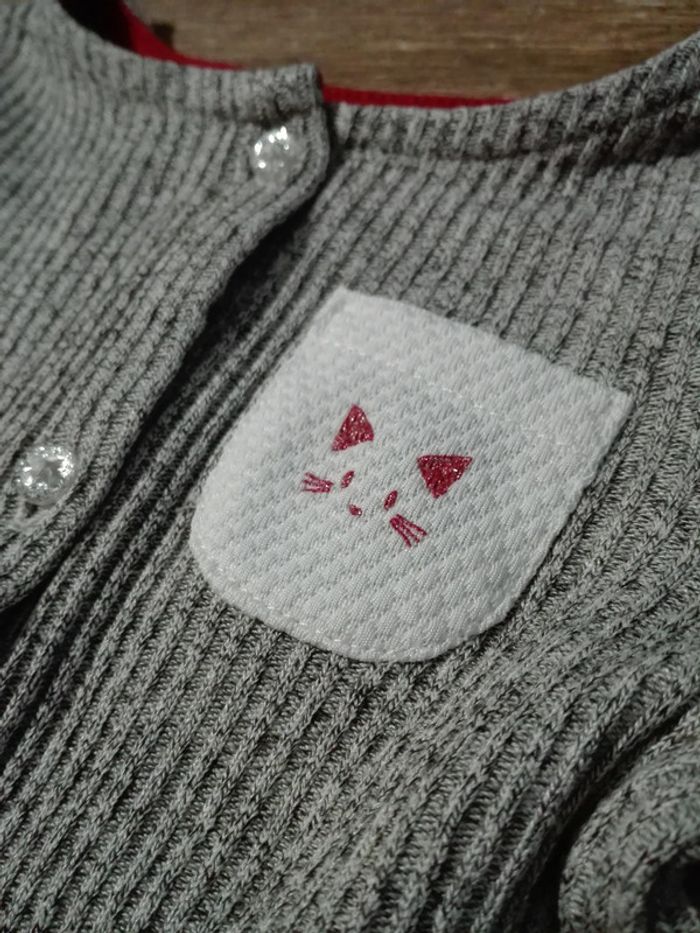 Gilet gris chiné rouge bébé fille 9 mois chat orchestra neuf - photo numéro 2