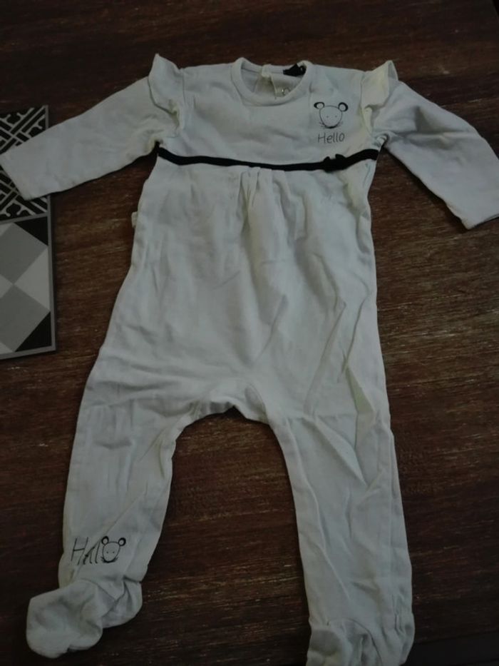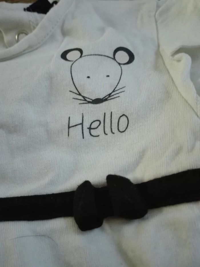 Pyjama bébé fille 12 mois blanc noeud noir souris élégant mariage cérémonie