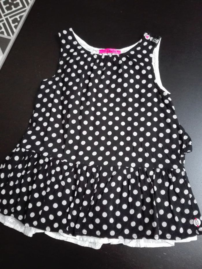 Tunique débardeur bébé fille 12 mois noir blanc pois doublure fleur ikks