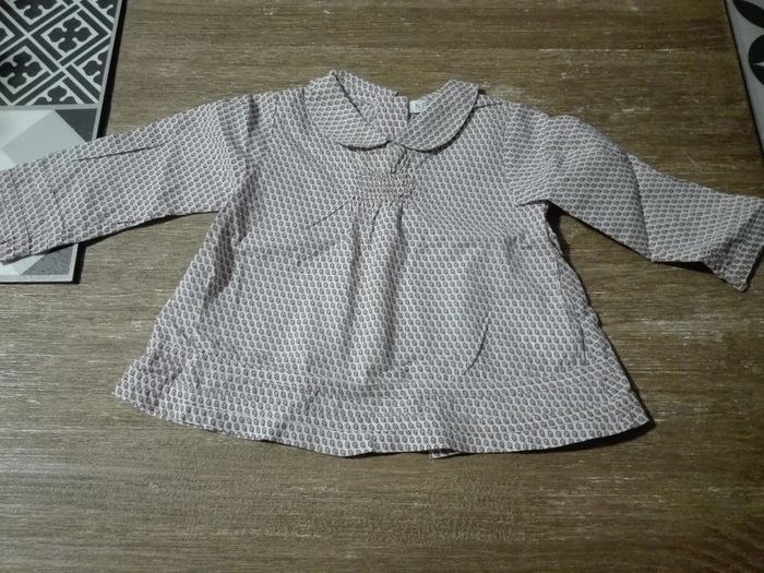 Blouse tunique col claudine bébé fille 9 mois liberty feuilles neuf