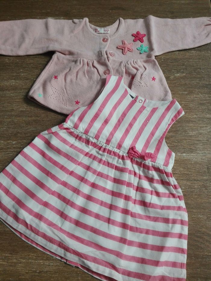 Ensemble été bébé fille 6 mois robe rayé rose mariniere gilet sirène étoile mer