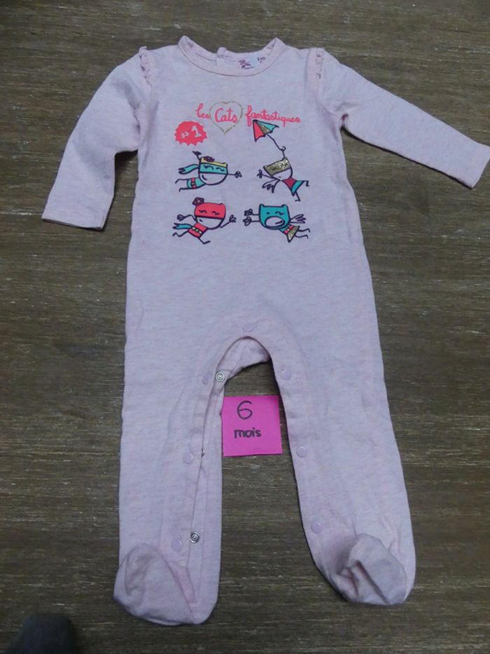 Pyjama fin bébé fille 6 mois DPAM neuf rose Cats fantastiques super-héros chats - photo numéro 1