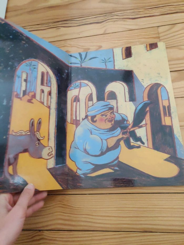 Livre grand format cartonné que l'on peut raconter soit l'un à côté de l'autre, soit en position de conteur grâce au rabat avec le texte en fin d'histoire Parfait état