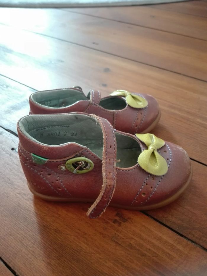 Kickers vintage bébé fille marron nacré violet noeuds vert été sandales ballerines 21 - photo numéro 1