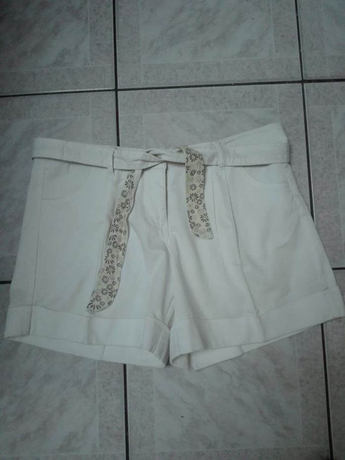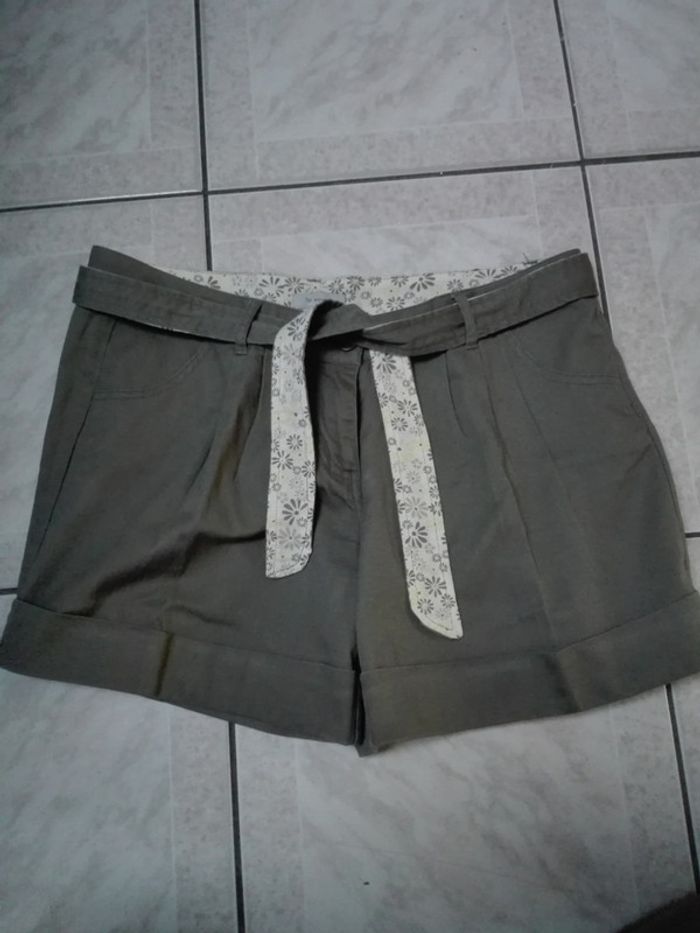 Lot 2 shorts coton kaki + blanc ceintures fleurs