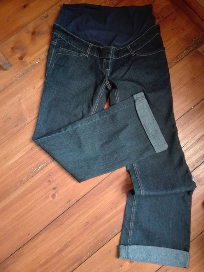 Pantalon en jean de grossesse Ceinture en tissu bleu Taille 40 TBE Marque calinkalin