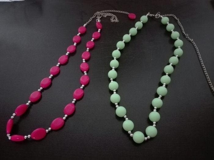Colliers neufs, sortis de l'emballage pour la photo Un rose, un vert Prix indiqué pour le lot