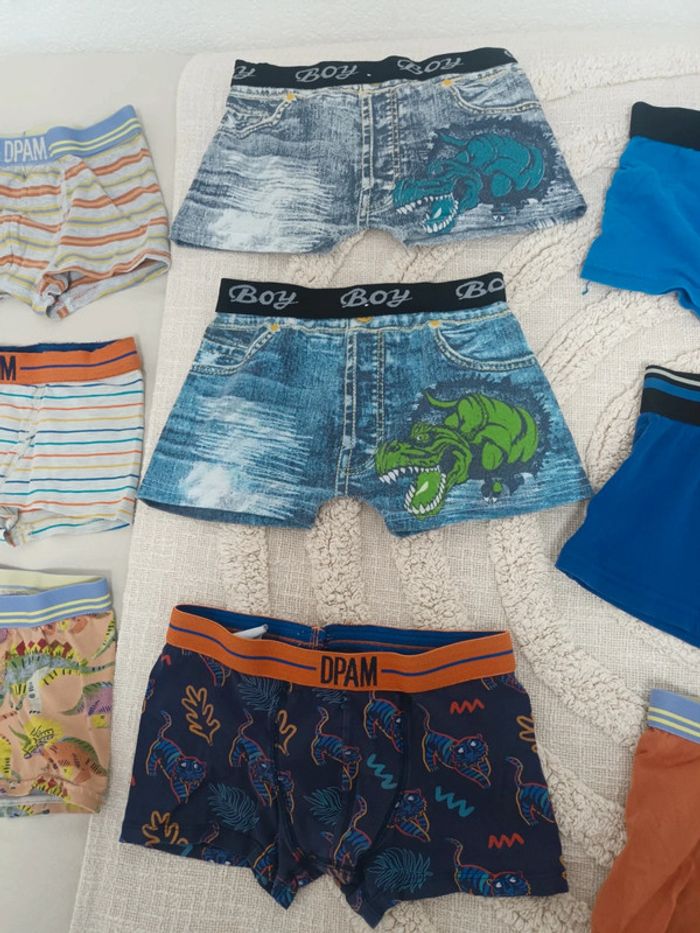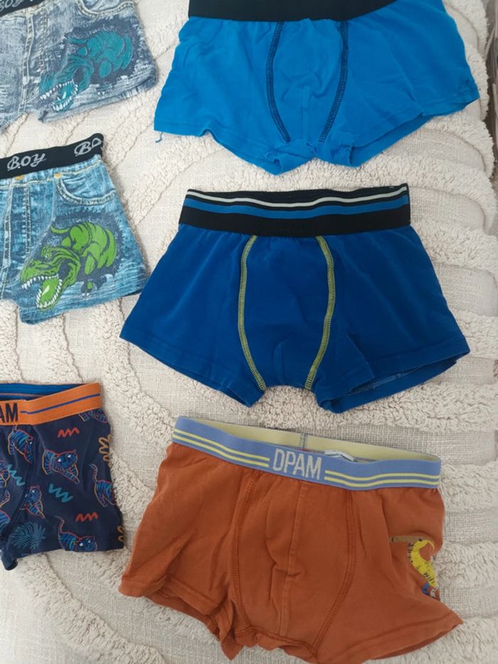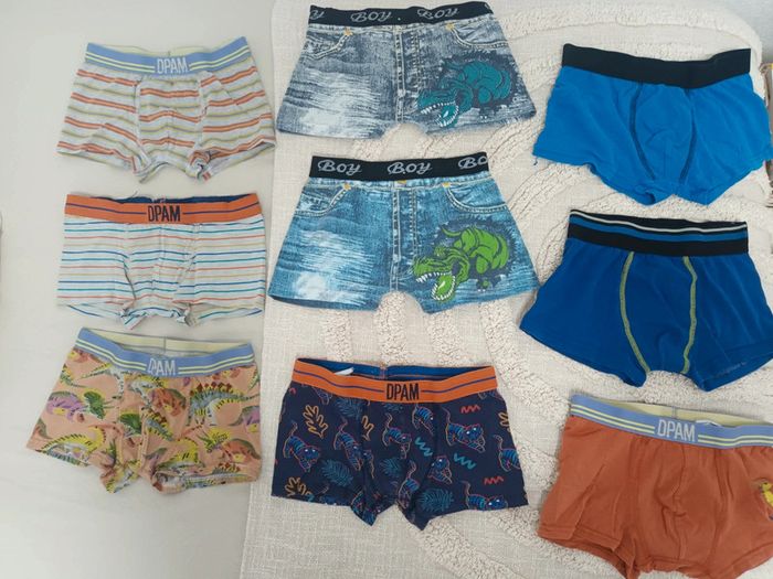 Lot de caleçons / boxers garçon 8 ans #kamilyam8ansgarçon Marque DPAM + deux effet jean Boy Dinosaures Je donne les 3 qui sont tout à droite sur la photos qui sont troués