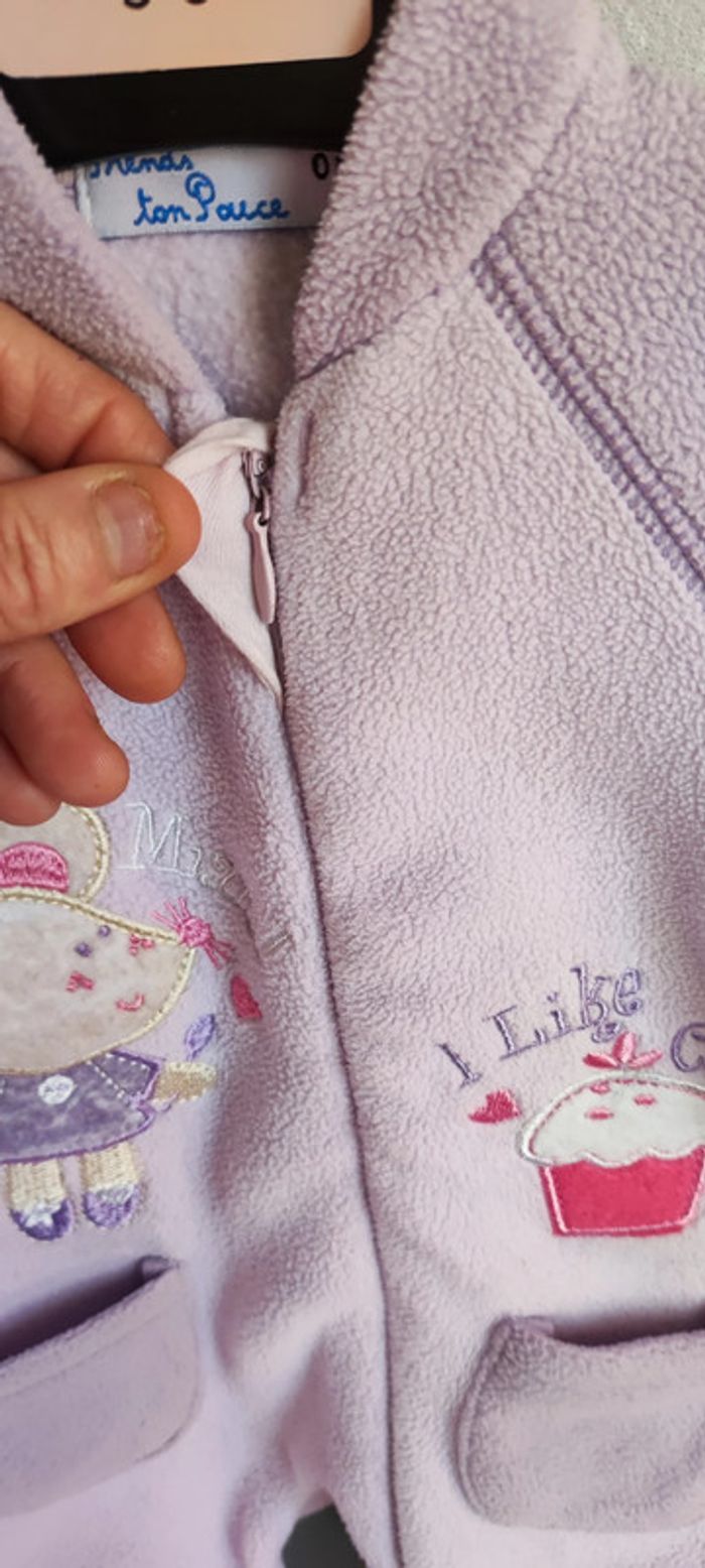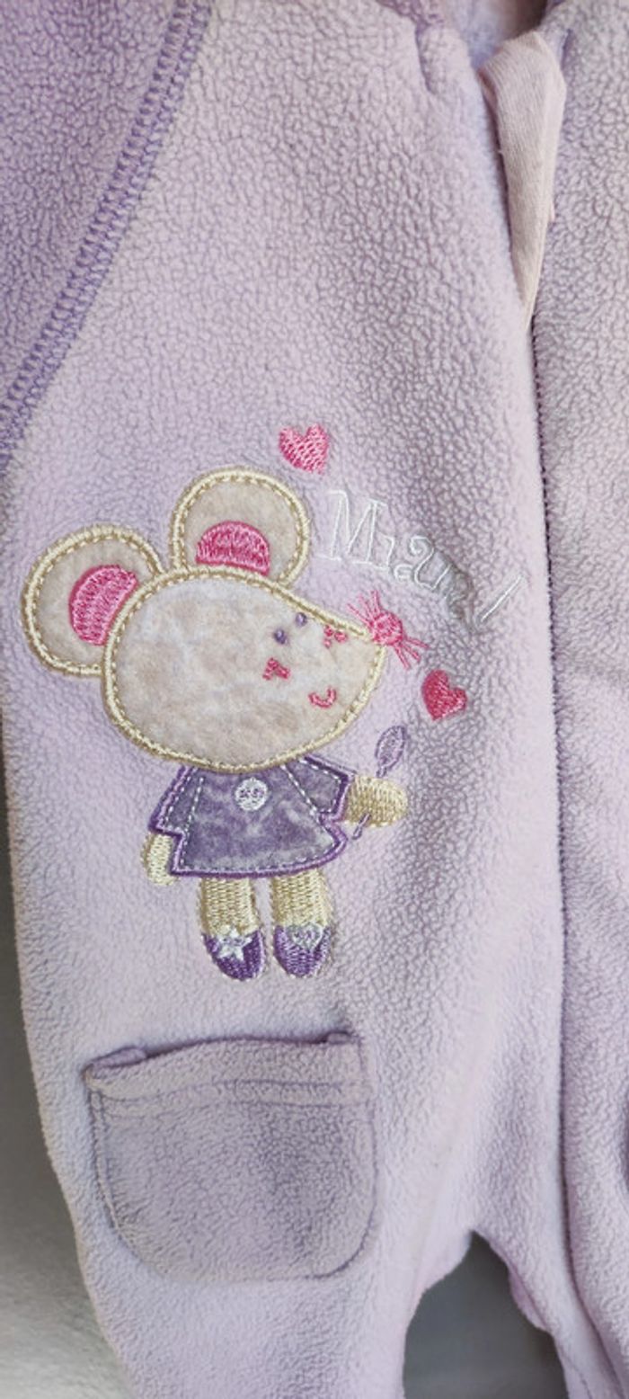 Joli pyjama bébé polaire violet clair et foncé Taille 0 mois ou naissance une jolie souris et un cupcake et des petites poches Ouverture par fermeture éclair du cou jusqu'au talon gauche Très bon état Mes articles naissance / 0 mois : remise activée #latetelledu29naissance #pyjamanaissance #pyjamanaissancefille #pyjamapolaire0mois #grenouillerebebe #bebenaissance #grenouillere0mois #naissancefille #pyjama0mois #combinaisonnaissance #grenouillerefille0mois