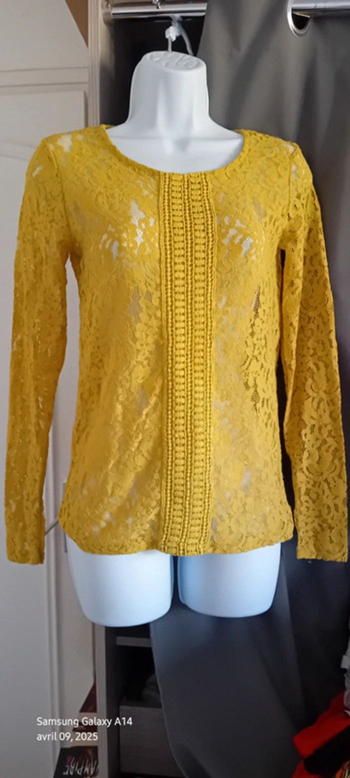 Haut en dentelle ajourée motif floral moutarde femme 36 promod - photo numéro 17