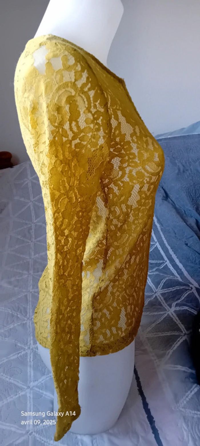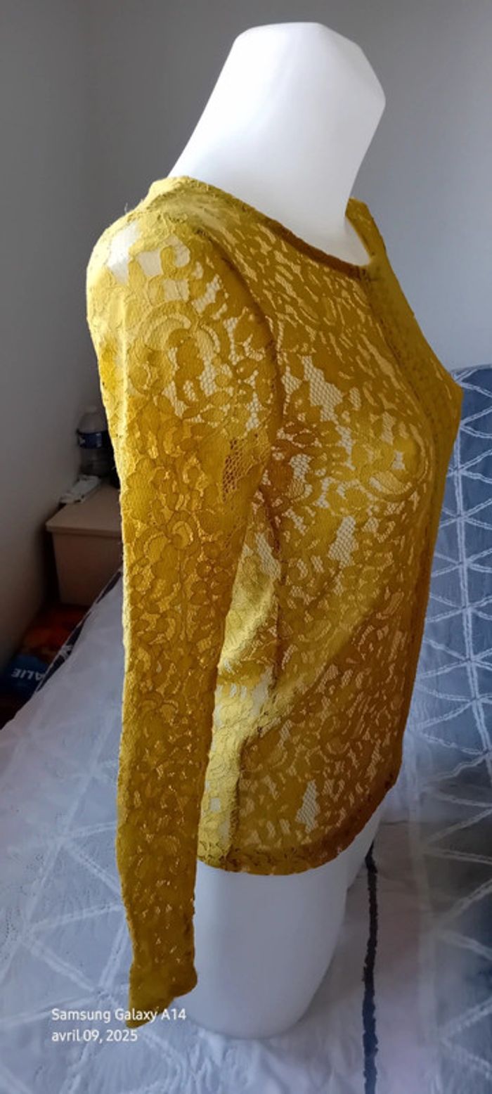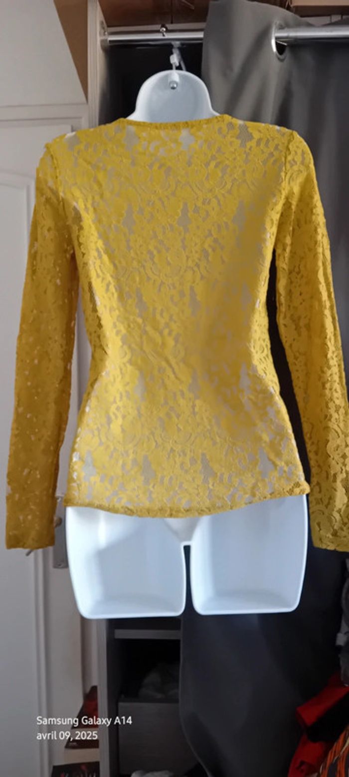 Haut en dentelle ajourée motif floral moutarde femme 36 promod - photo numéro 6