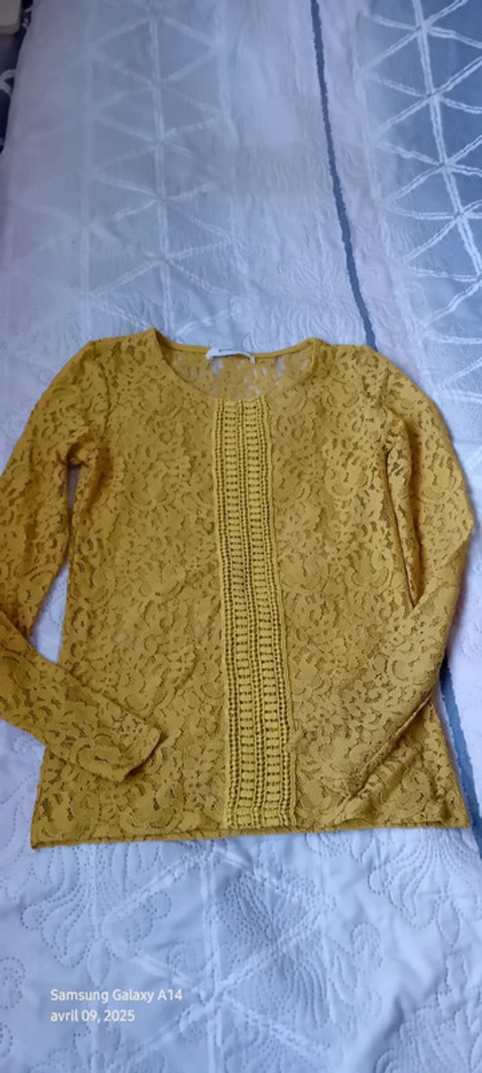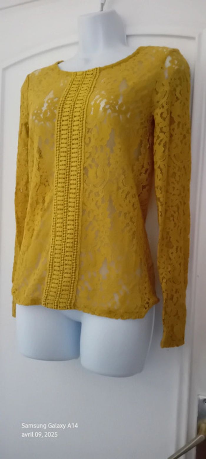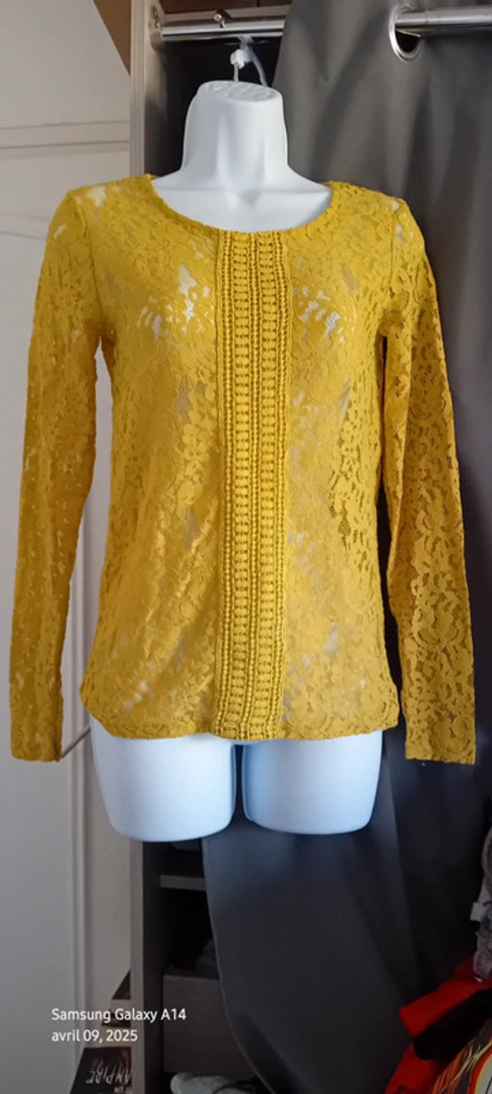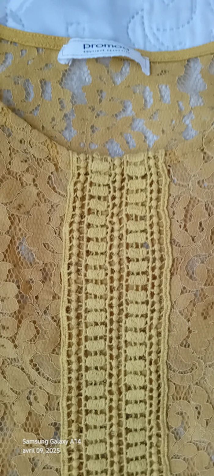 Haut en dentelle ajourée motif floral moutarde femme 36 promod - photo numéro 14