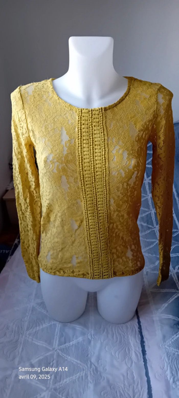 Haut en dentelle ajourée motif floral moutarde femme 36 promod