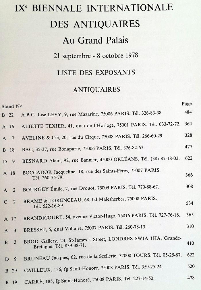 les antiquaires décorateurs joailliers orfèvres au grand palais Paris 21 septembre 8 octobre 1978