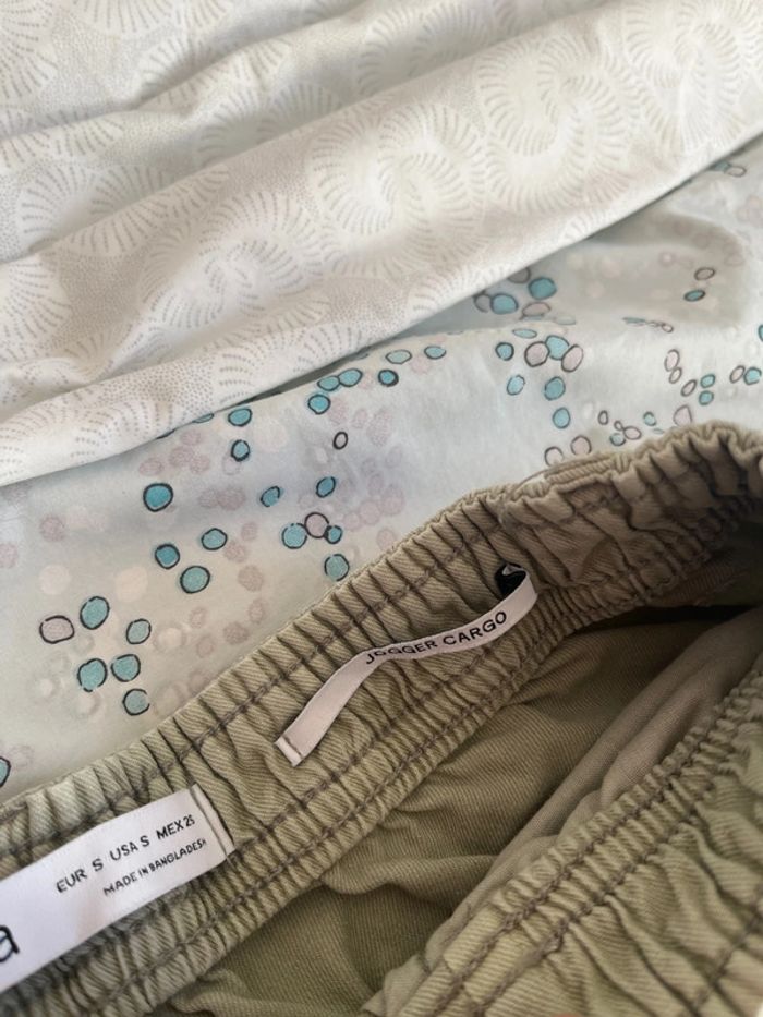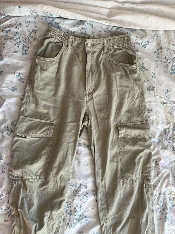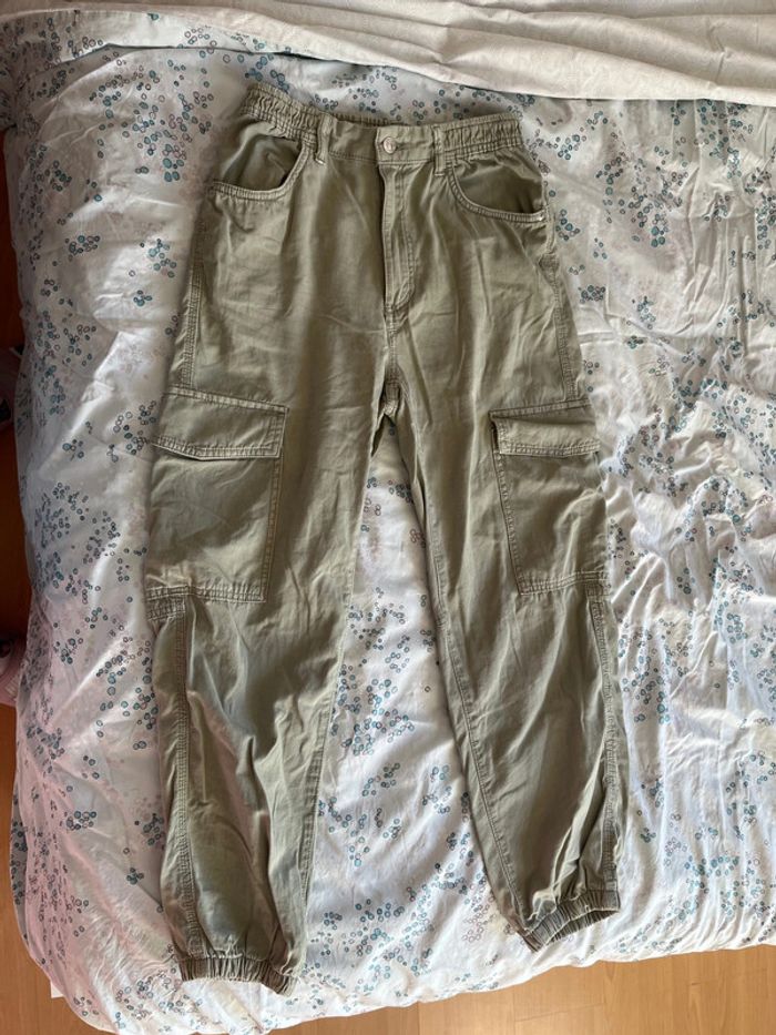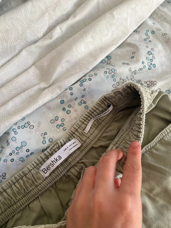Jogger, cargo kaki de la marque Bershka, taille S en très bon état. Matière élastique.
