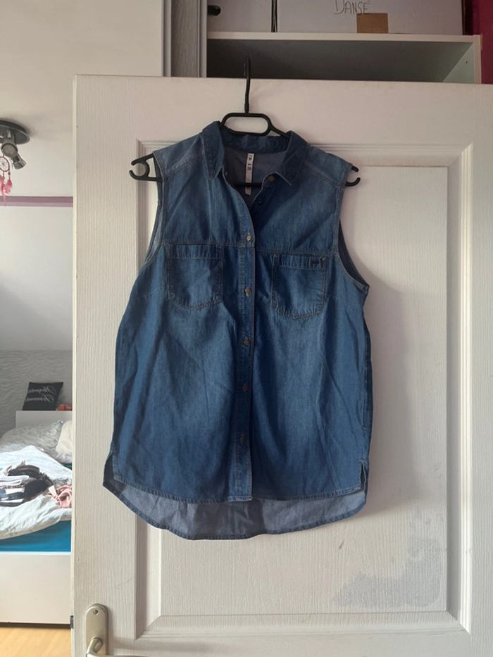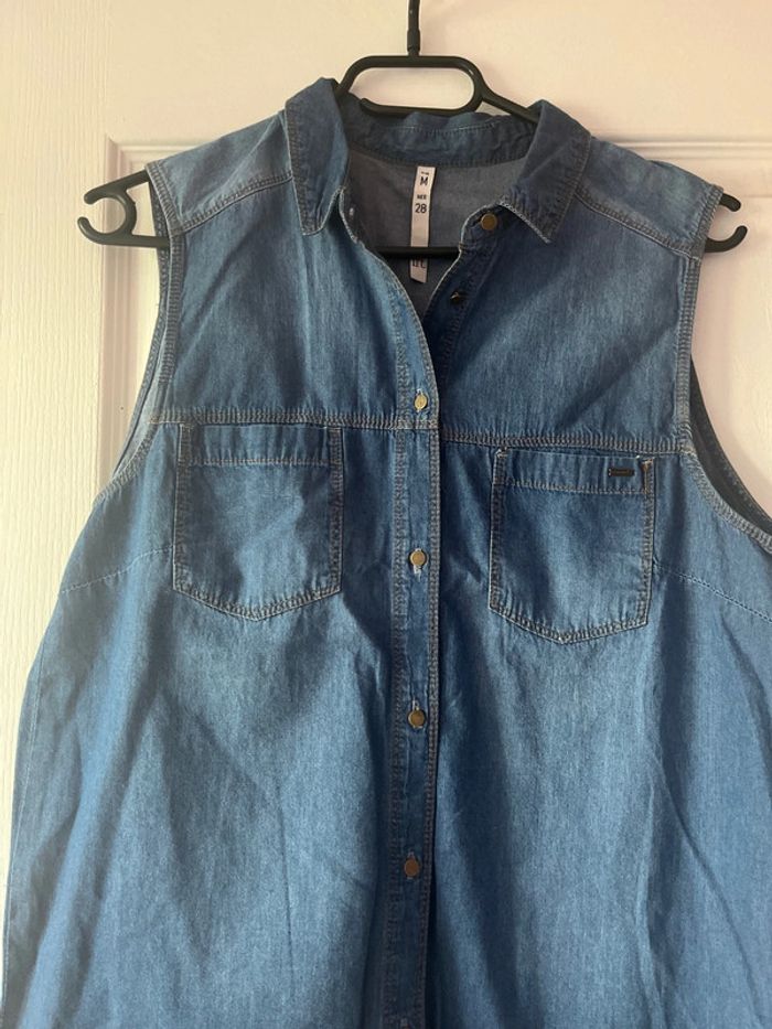 Chemise en jean, sans manches, en très bon état, jamais porté, taille M. Matière légère et agréable.