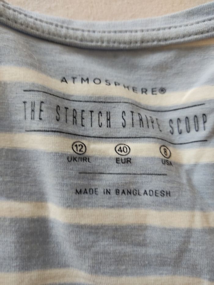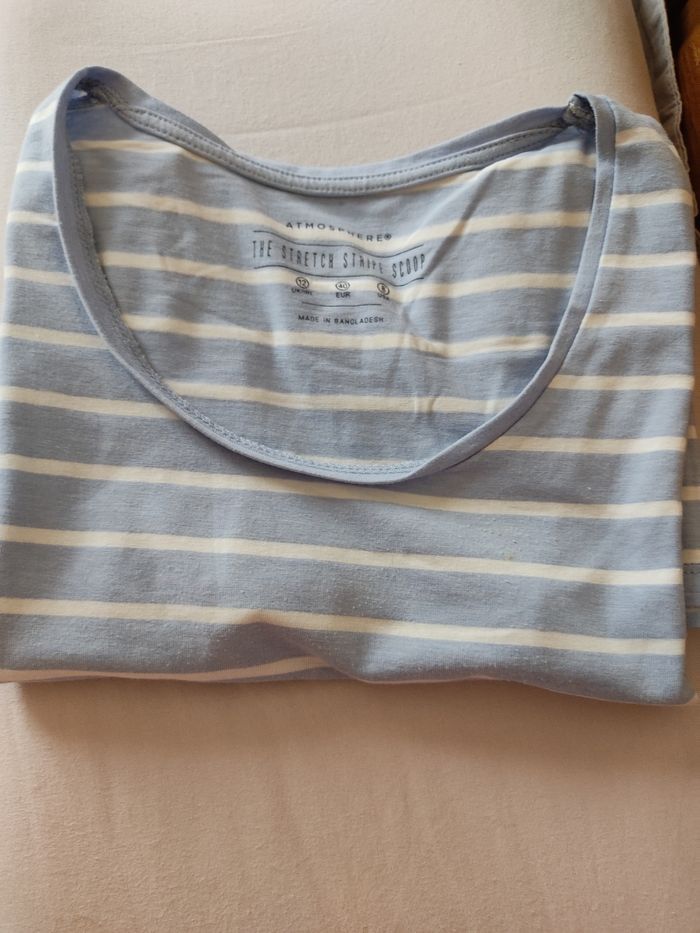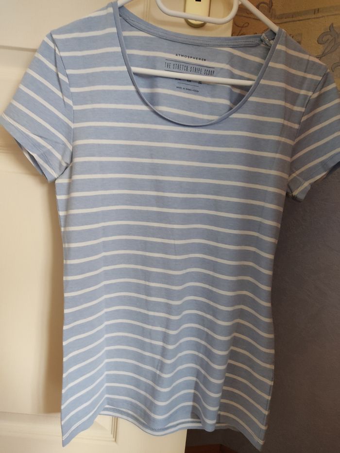 Tee shirt femme Primark, bleu ciel et blanc, manches courtes
