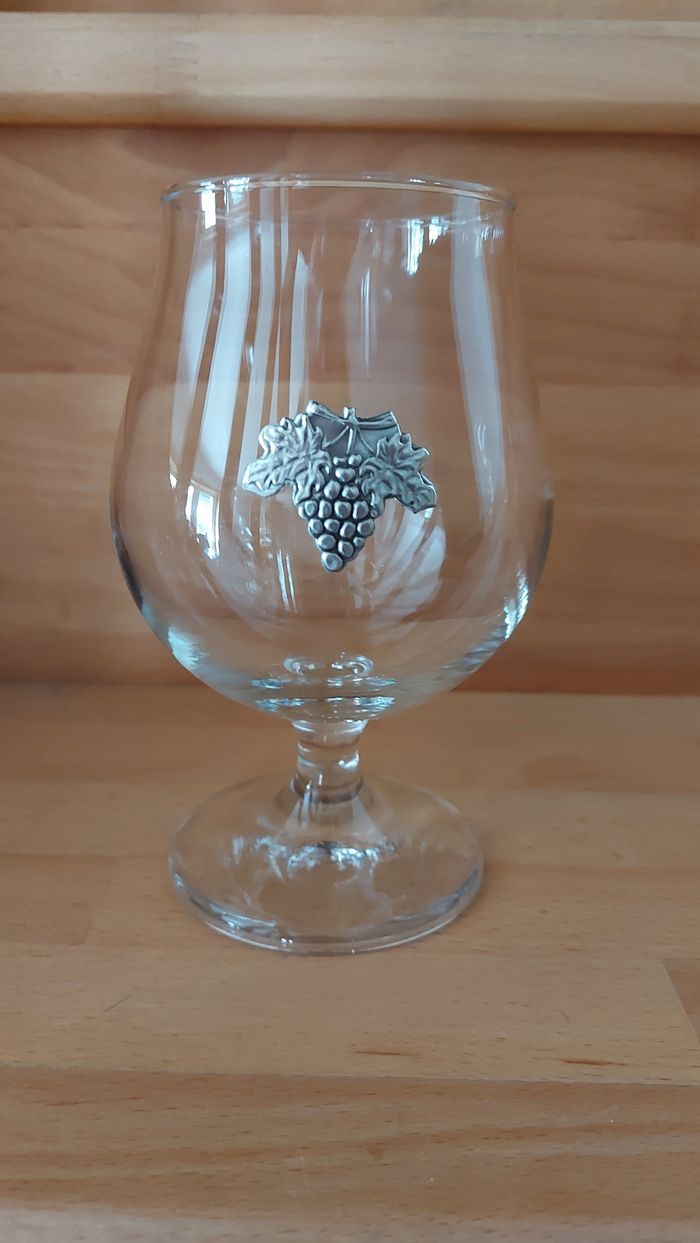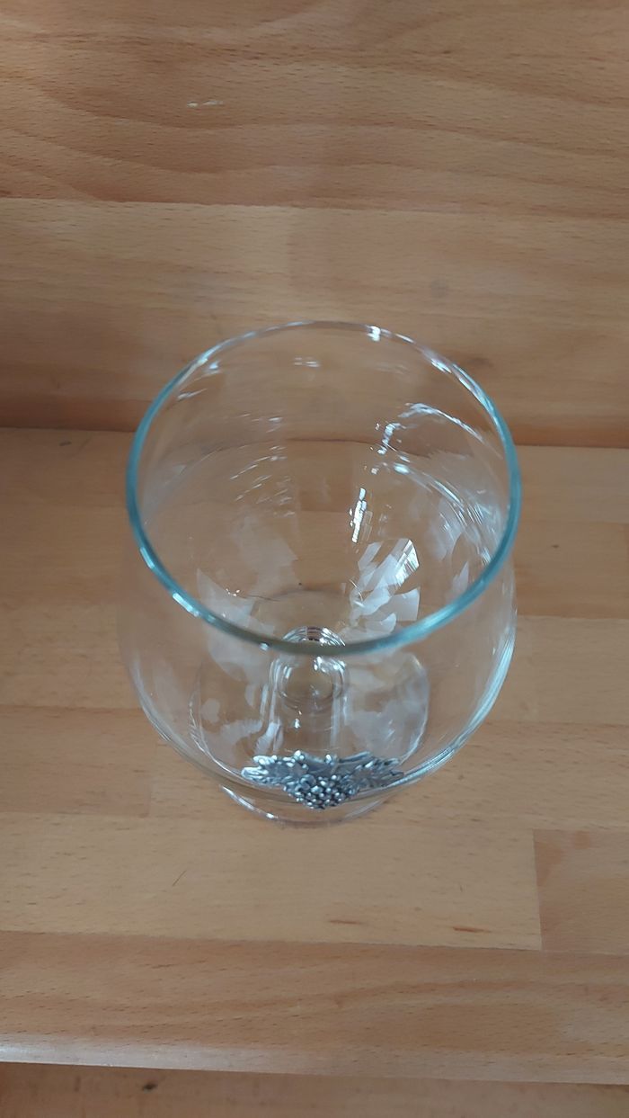 Verre ballon de collection avec motif en étain Ht 15 x diamètre 7 cm