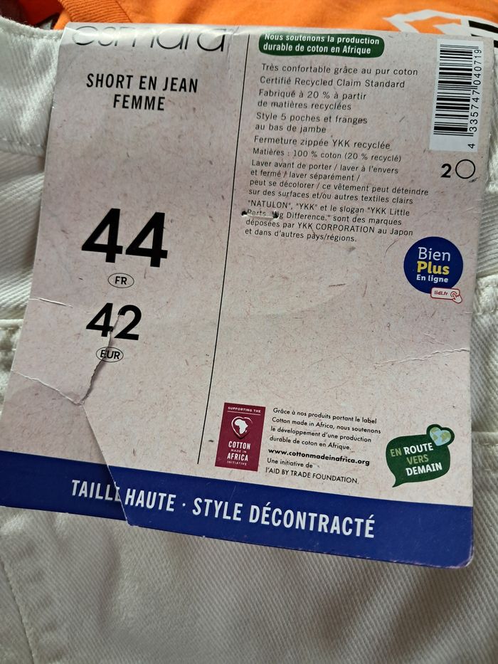 Short en jean Esmara taille 44 crème Poches latérales et à l'arrière Bouton et braguette