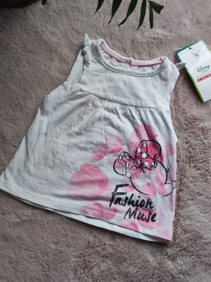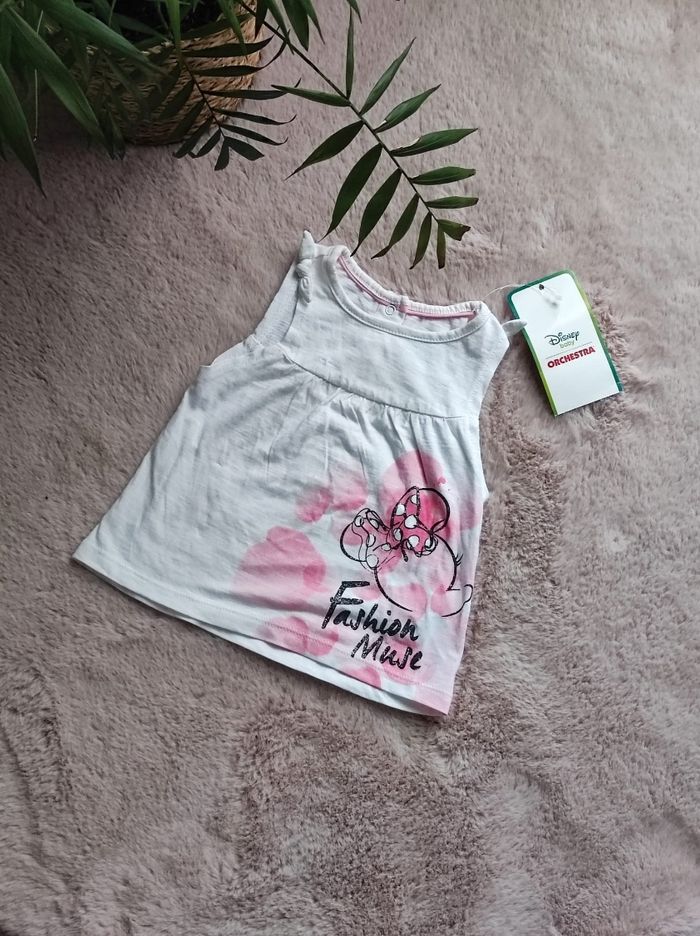 petit haut / débardeur ou ribe très courte avec dessin minnie. Marque orchestra en collaboration avec Disney en 12 mois. Jamais porter avec son étiquette.