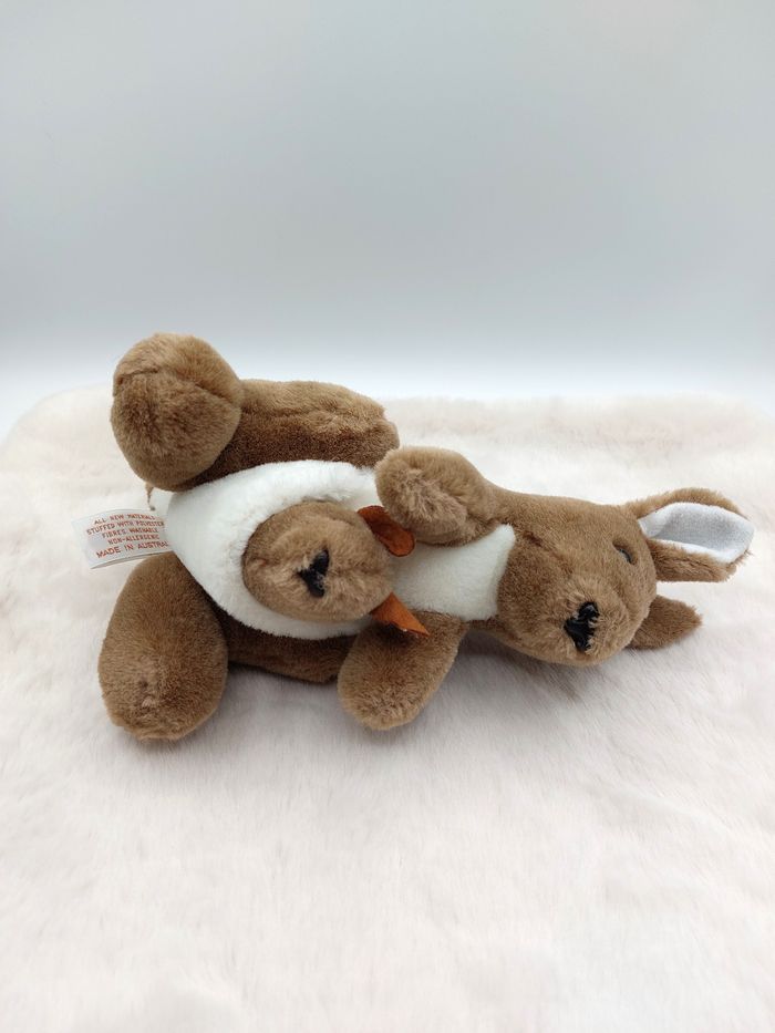 Peluche doudou kangourou et son bébé KOALA Families 27 cm Sydney Australie - le bébé ne peut pas s'enlever de la poche Très bon état sauf un léger frottement aux yeux et un défaut de finition sur l'oreille du bébé Envoi rapide Réf A12319 #minotresor #peluche #doudou #plush #knuffel #comforter #australie #australia